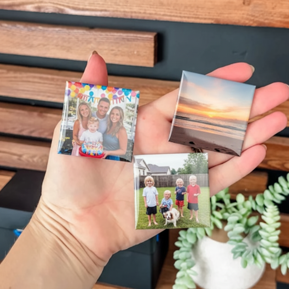 Erwecke deine schönsten Erinnerungen zum Leben : mit unseren personalisierten Foto-Magneten. Die perfekte Möglichkeit, deinen Kühlschrank, Arbeitsplatz oder jede magnetische Oberfläche mit den Menschen und Momenten zu schmücken, die dir am meisten bedeuten.